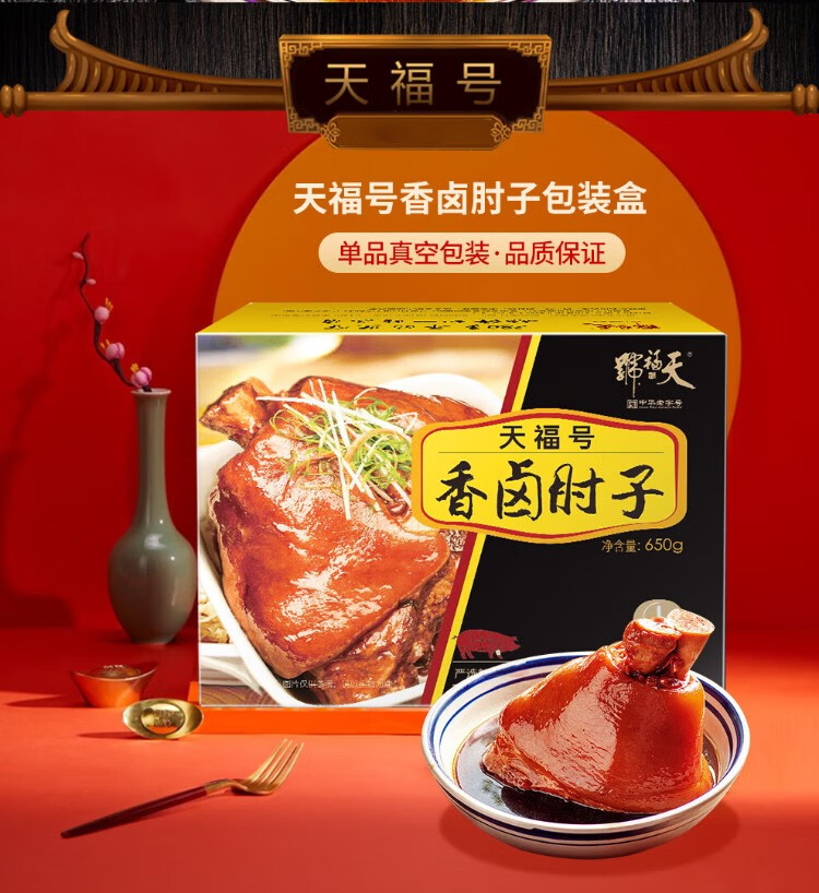 天福号 卤香肘子 即食熟食北京特产下酒菜猪肘子 0.65kg 自营