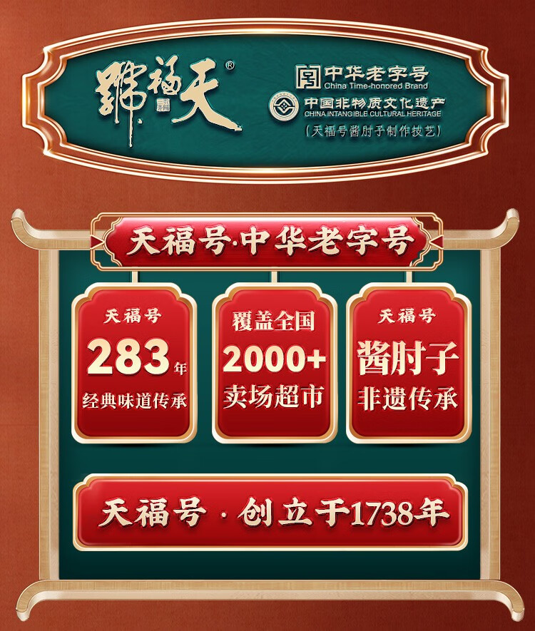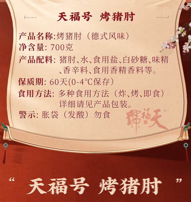 天福号 德式烤猪肘子 酱香肉整膀蹄盒装老北京特产 0.7kg 自营