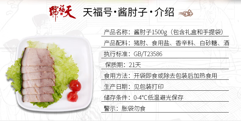 天福号 酱肘子礼盒 酱卤猪肉前整肘去骨熟食年货 1.5kg 自营