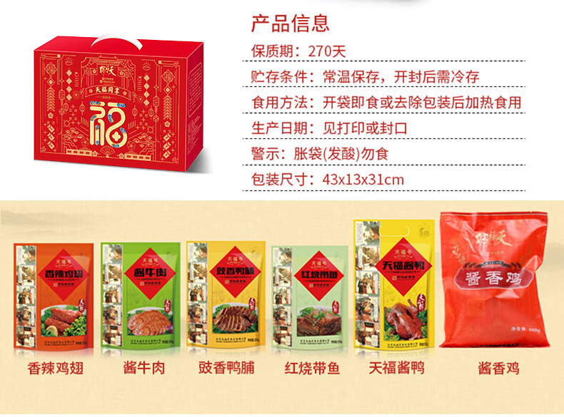 天福号 天福同享熟食礼盒 北京特产酱肉礼盒 1.9kg 自营