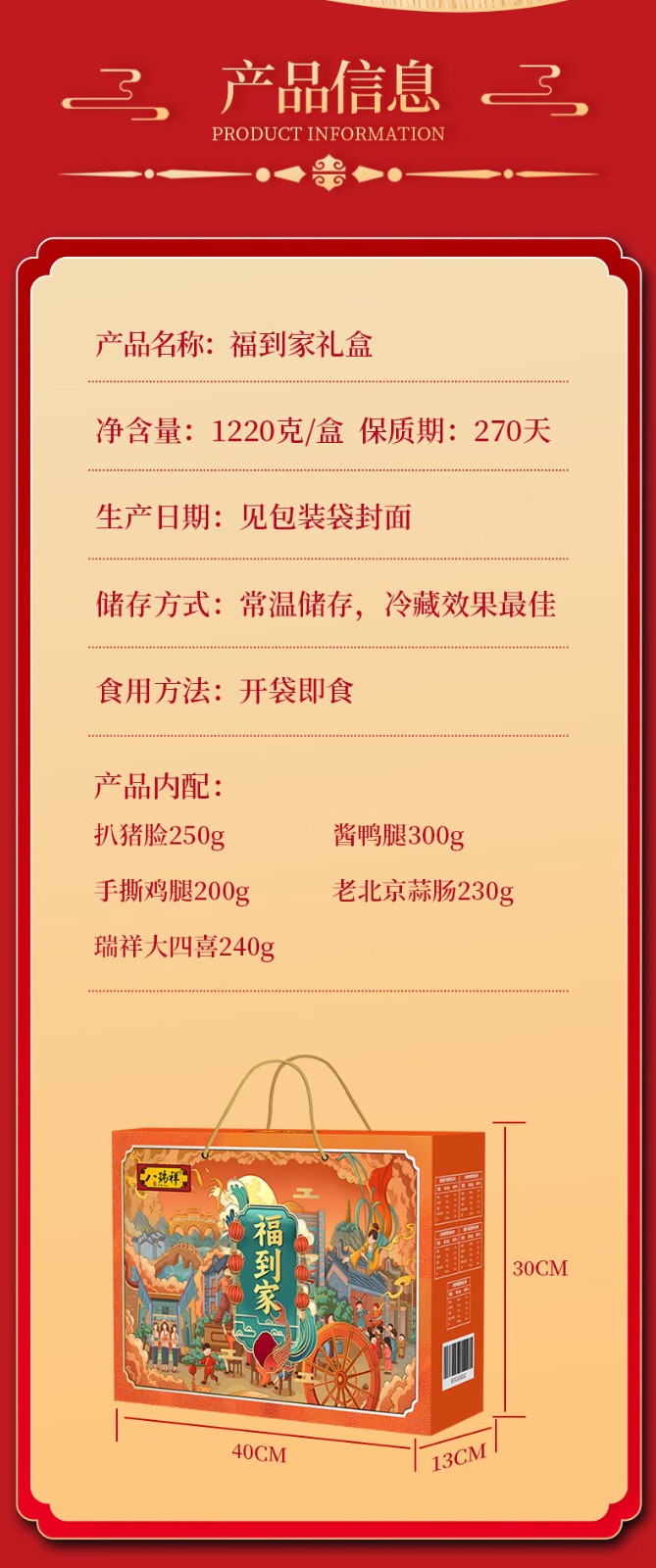 八瑞祥 送礼大礼包 组合年货送礼 八瑞祥熟食大礼包 福到家1220g 自营