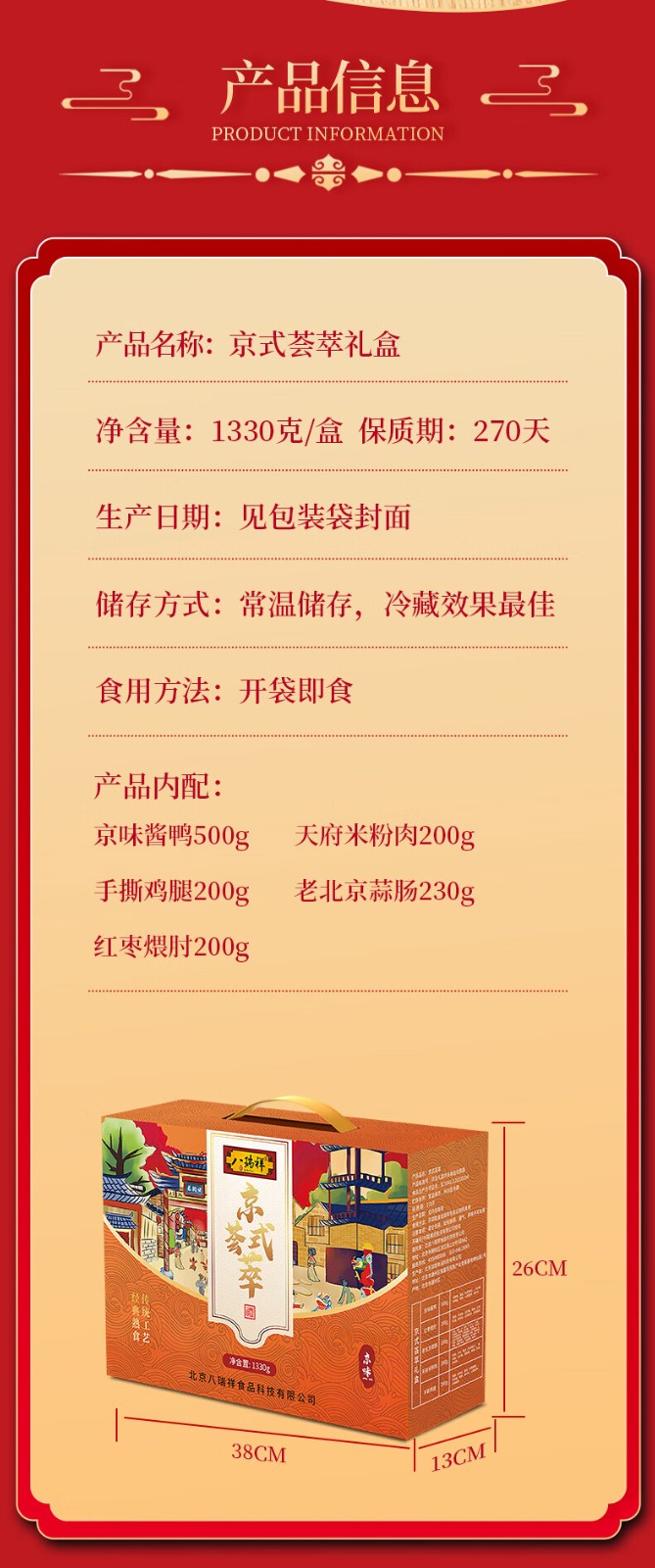 八瑞祥 送礼大礼包 组合年货送礼 八瑞祥熟食大礼包 京式荟萃1330g 自营