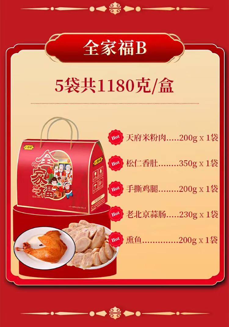 八瑞祥 年货大礼包 组合年货礼盒 八瑞祥熟食大礼包全家福系列J3540g 自营