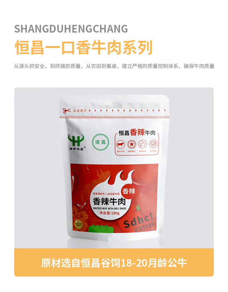 商都恒昌 麻辣牛肉 熟食 办公室休闲零食 开袋即食零食 180g/袋 自营