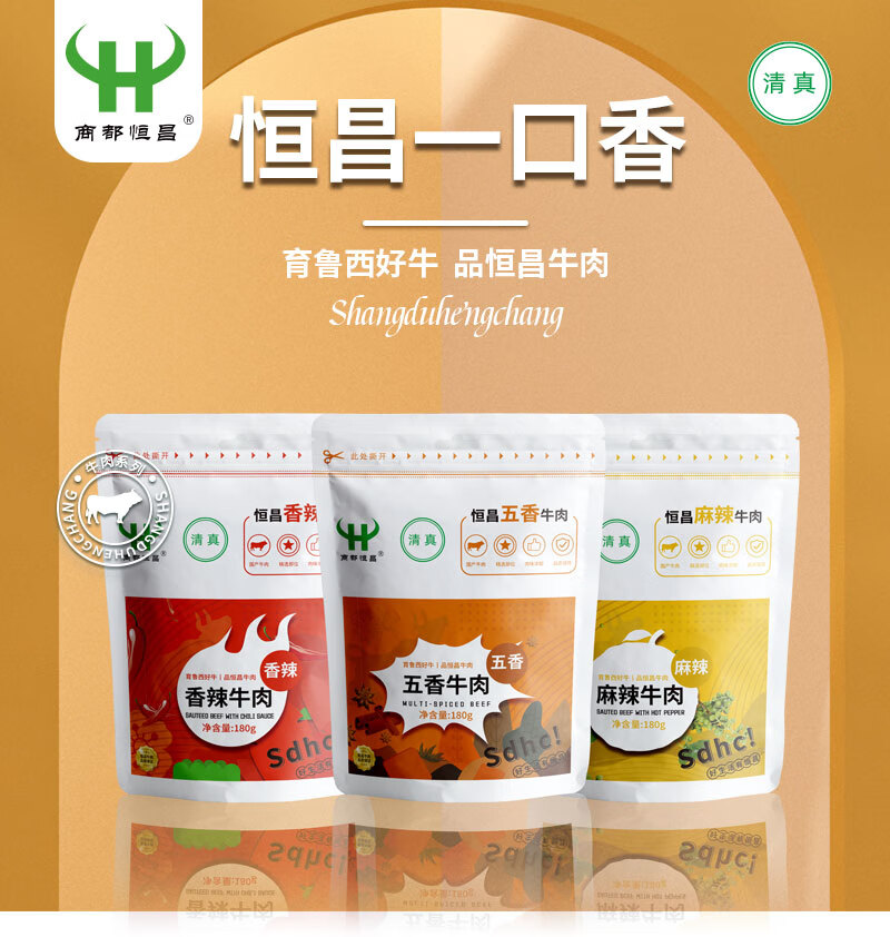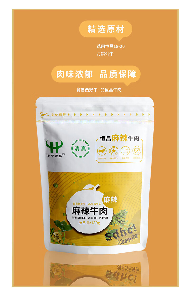 商都恒昌 香辣牛肉 熟食 办公室休闲零食 开袋即食零食 180g/袋 自营