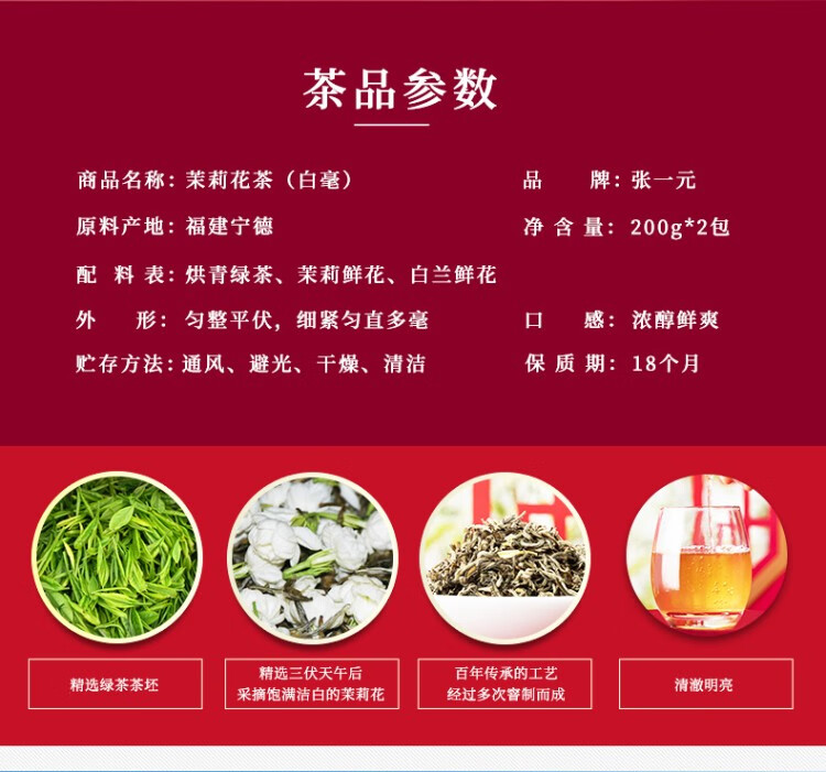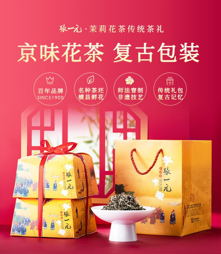 张一元 茶叶 花草茶 浓香型茉莉花茶传统礼包 400g×1盒 自营