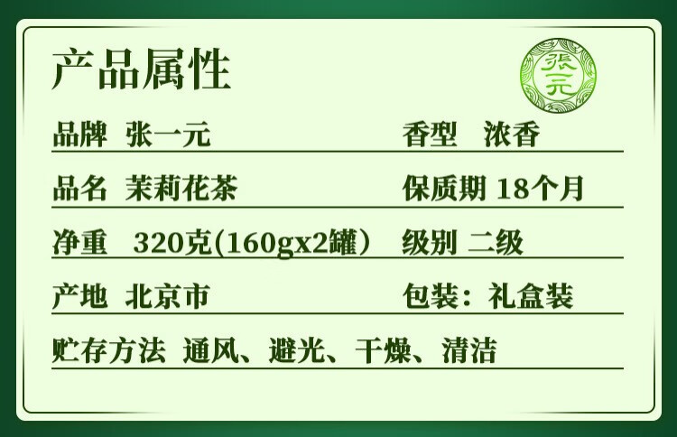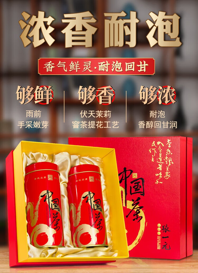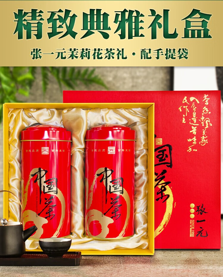 张一元 茶叶 浓香茉莉花茶 送礼茗茶中华老字号 金福礼盒 320g×1盒 自营
