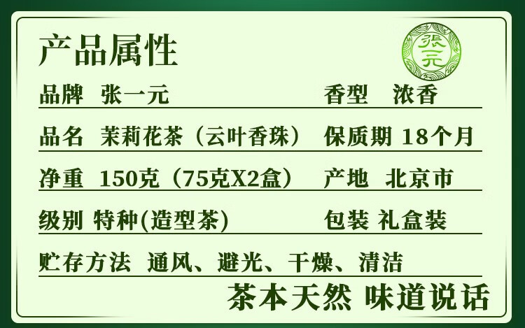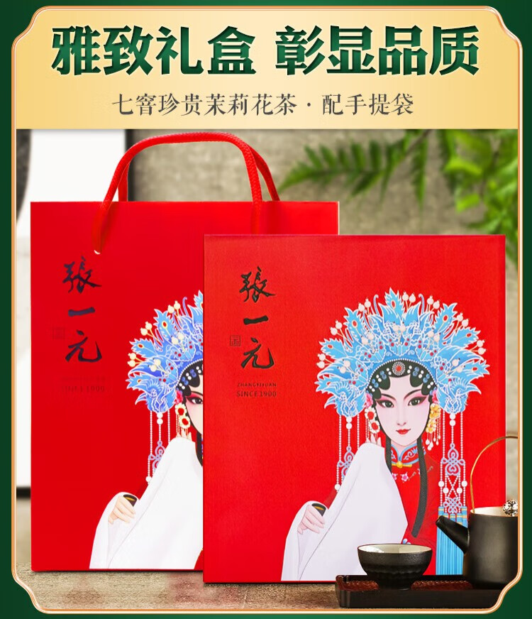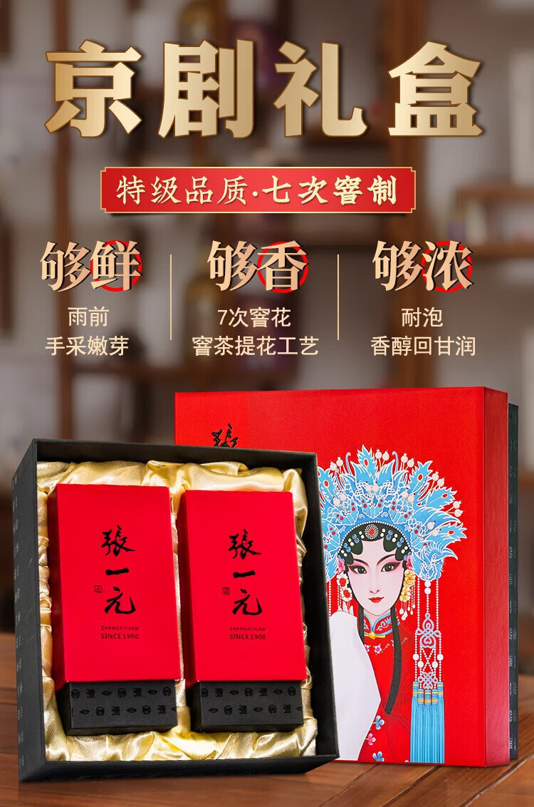 张一元 特种茉莉花茶 云叶香珠 球形龙珠中华老字号京剧礼盒 150g×1盒 自营