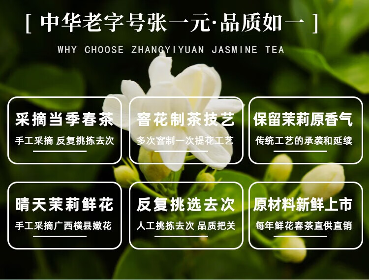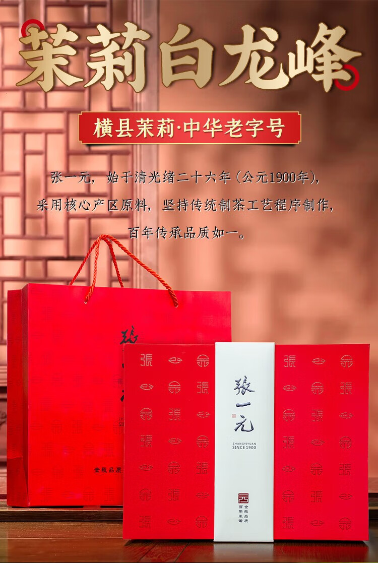 张一元 茶叶 新茶浓香茉莉花茶白龙峰 礼盒装 480g×1盒 自营
