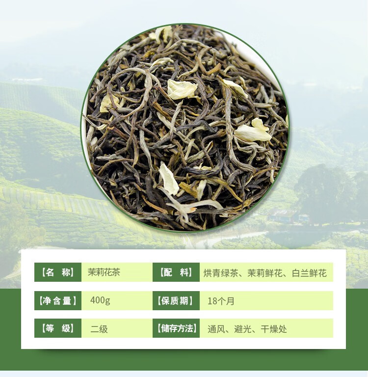 张一元 茶叶 特种浓香型茉莉花茶 精选八窨茉莉毛尖 200g×1罐