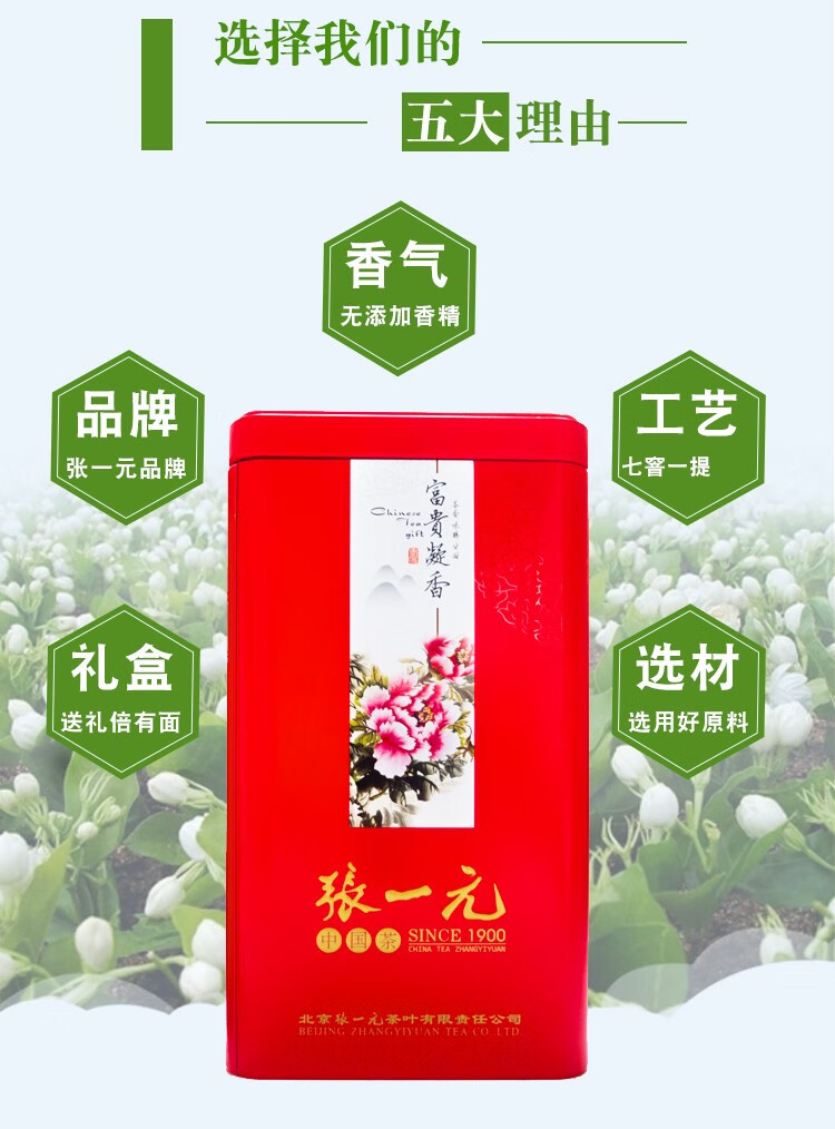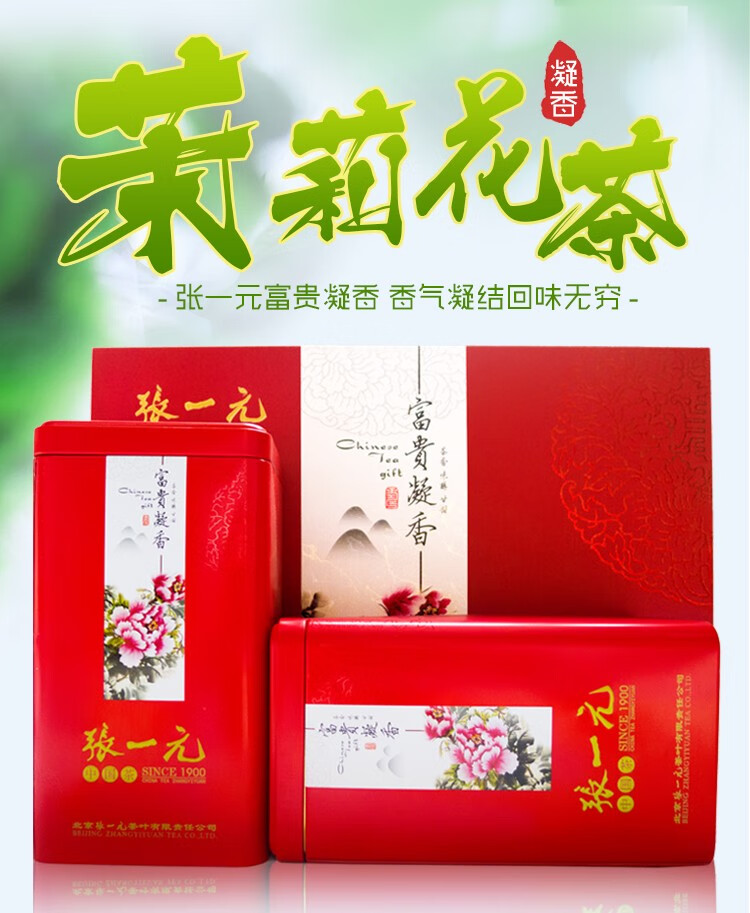 张一元 中国元素特级茉莉花茶 浓香型耐泡茉莉花茶 白雪香 50g×1罐
