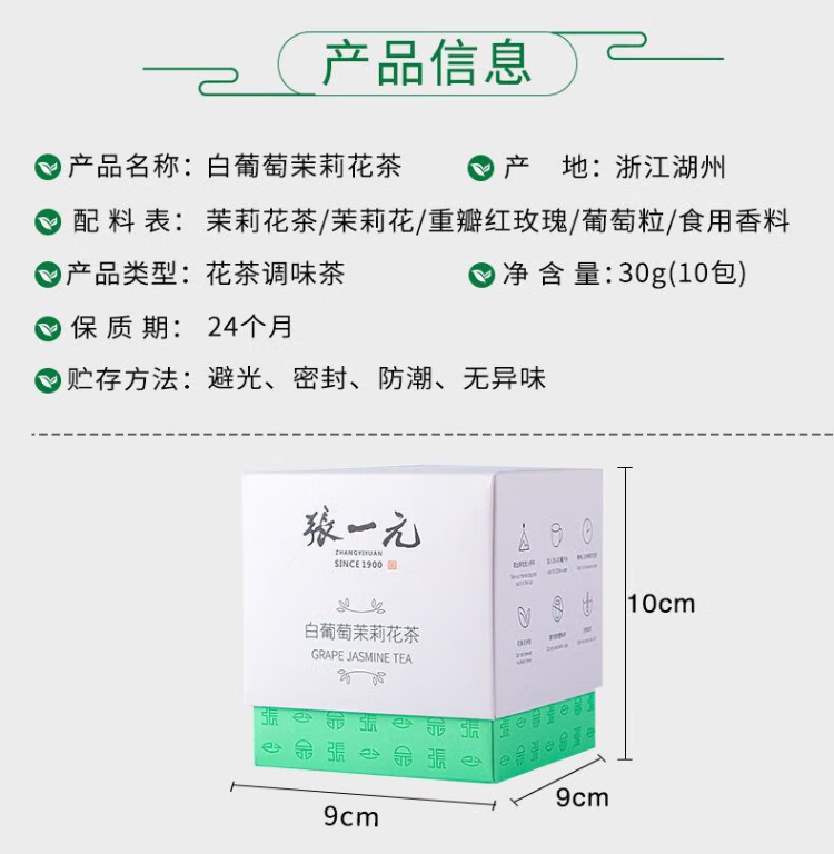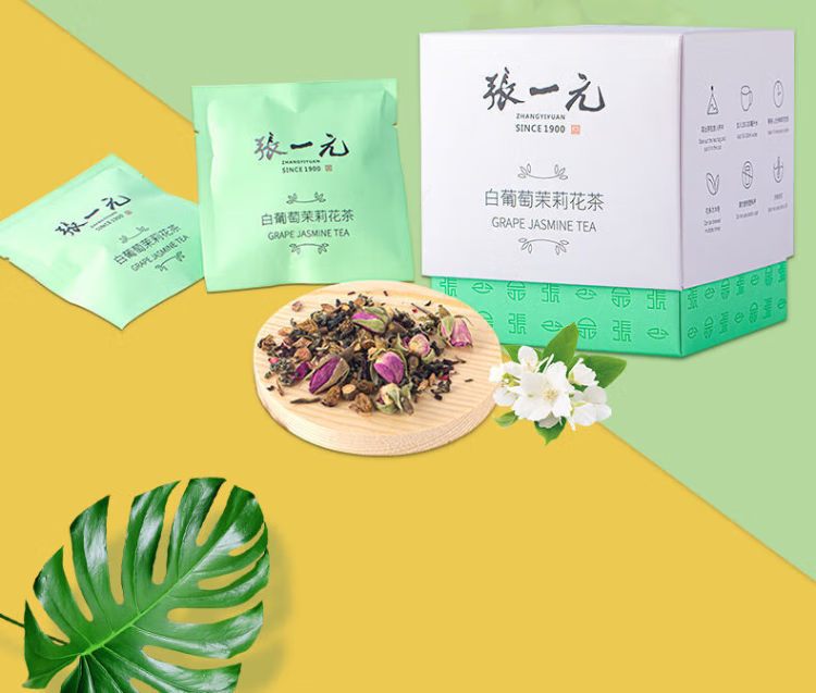 张一元 白葡萄茉莉花茶 水果茶 冷泡茶 30g×1盒(10包) 自营