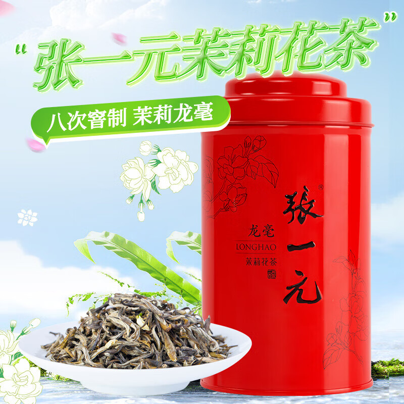 张一元 中国元素特级茉莉花茶 浓香型耐泡茉莉花茶 白雪香 50g×1罐