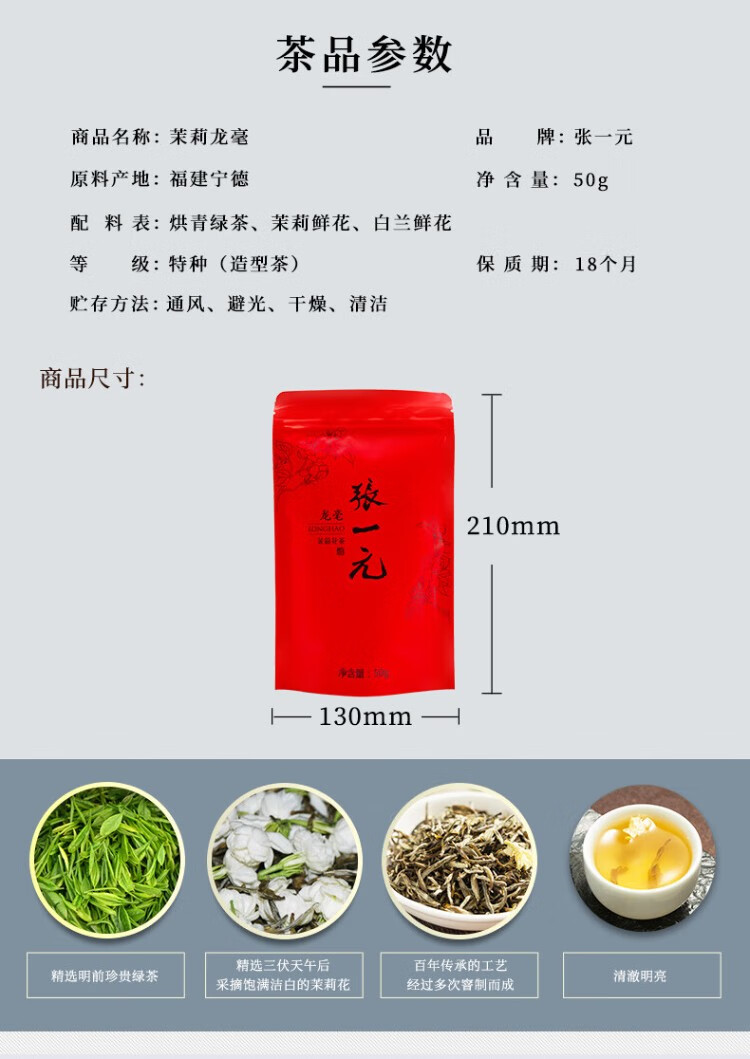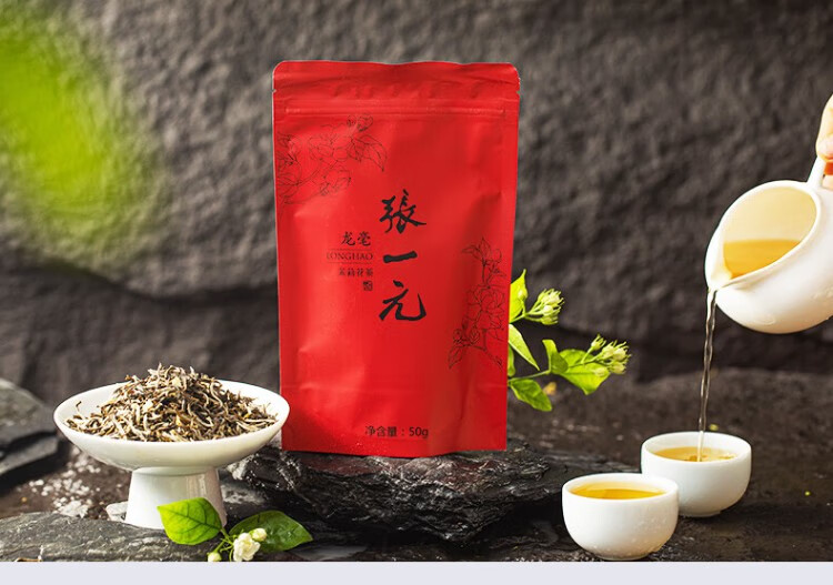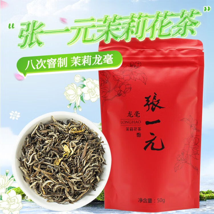 张一元 茶叶 茉莉花茶 清香型花草茶 八次窨制茉莉花龙毫 50g×1袋 自营