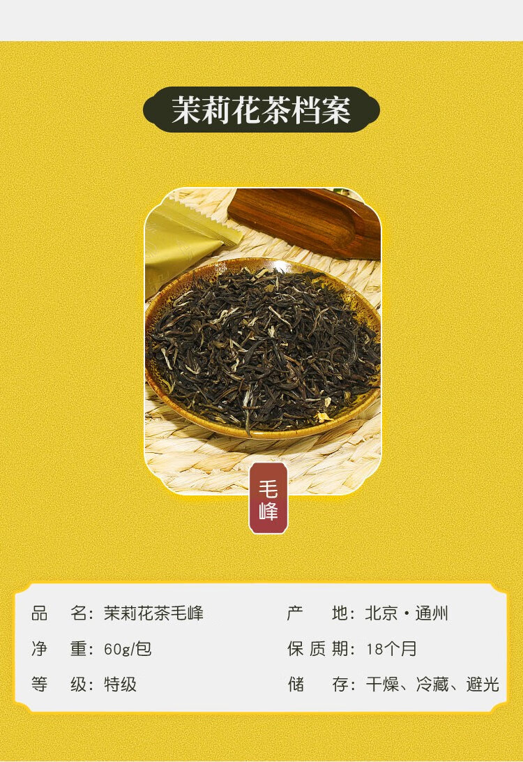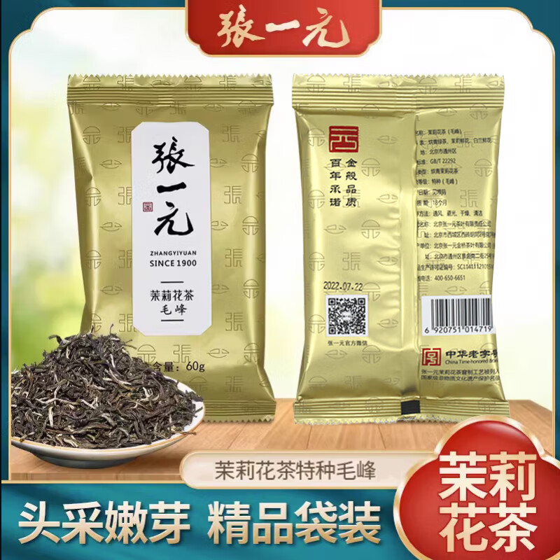张一元 茶叶 茉莉花茶 特级浓香型毛峰 袋装绿茶叶 60g×1袋