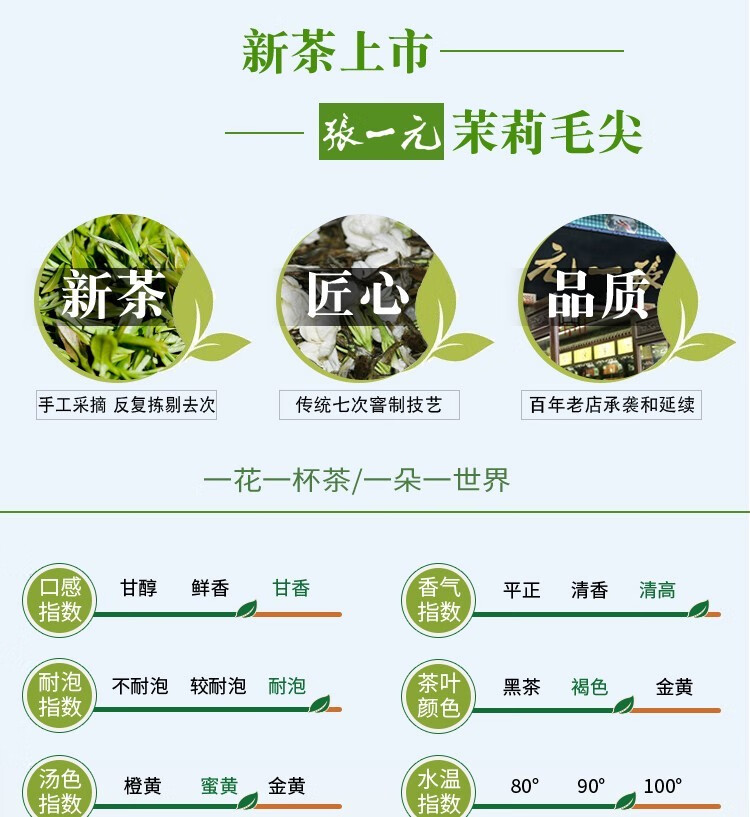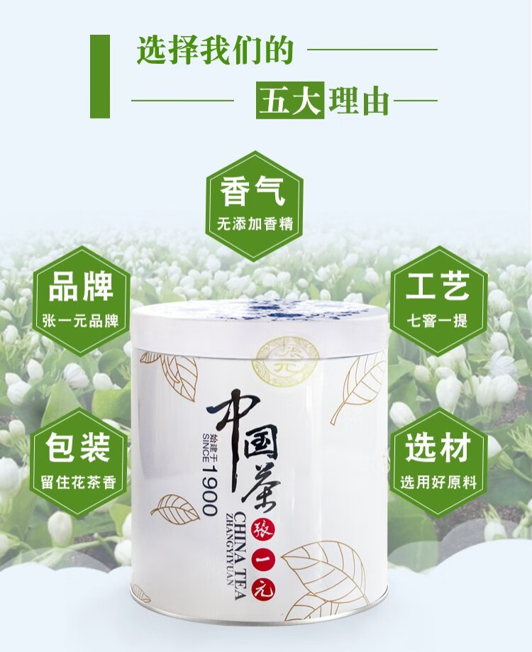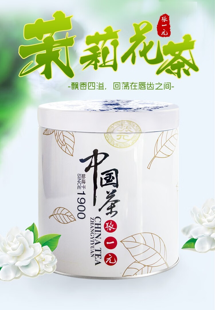 张一元 中国元素特级茉莉花茶 浓香型耐泡茉莉花茶 白雪香 50g×1罐 自营