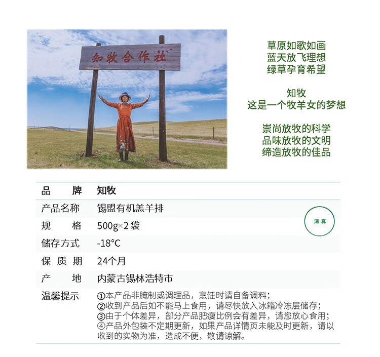知牧 国产 乌珠穆沁羔羊肋排 锡盟有机羔羊排500gx2 自营