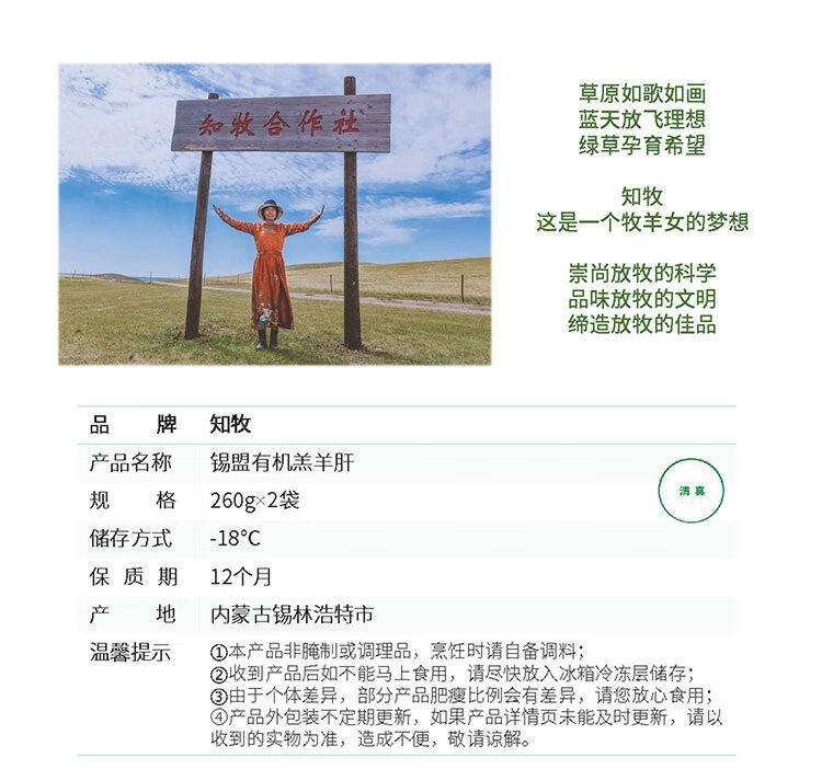 知牧 乌珠穆沁羔羊肝精选 锡盟有机羔羊肝260g×2 自营