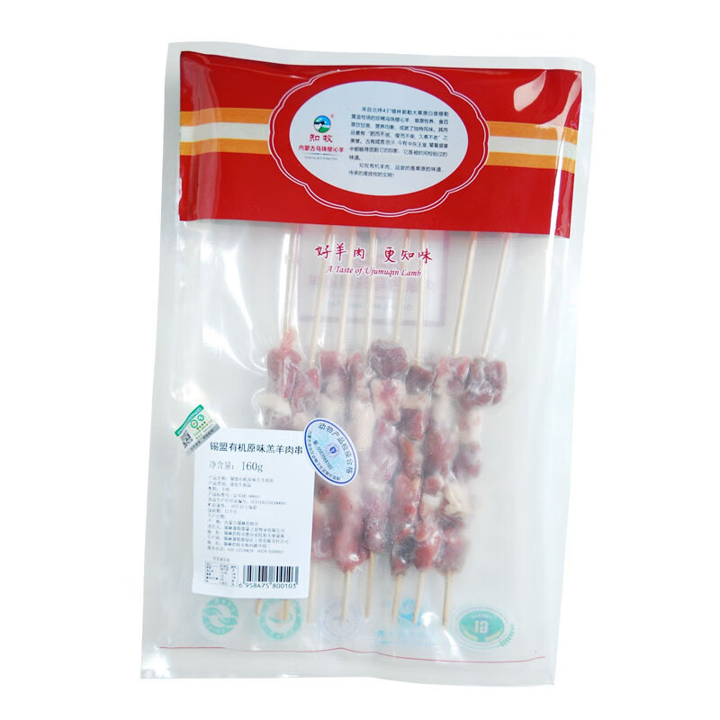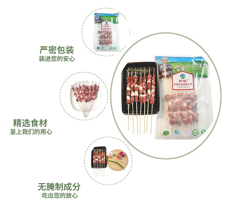 知牧 乌珠穆沁羔羊后腿肉穿制 锡盟有机原味羔羊肉串160g×4 自营