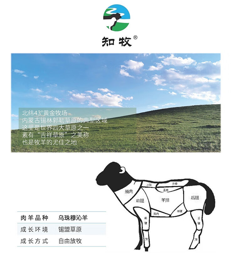 知牧 乌珠穆沁羔羊通体肉切丁锡盟有机羔羊肉馅350g×2 自营