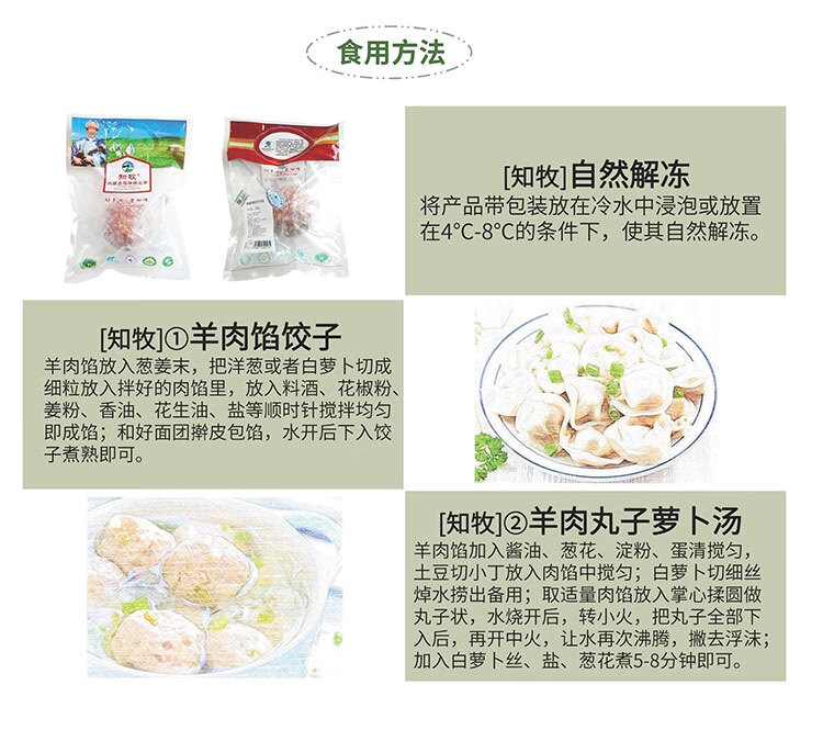 知牧 乌珠穆沁羔羊羊肉馅 羊肉丸子羊肉馅包饺子包子肉馅 350g×2袋 自营