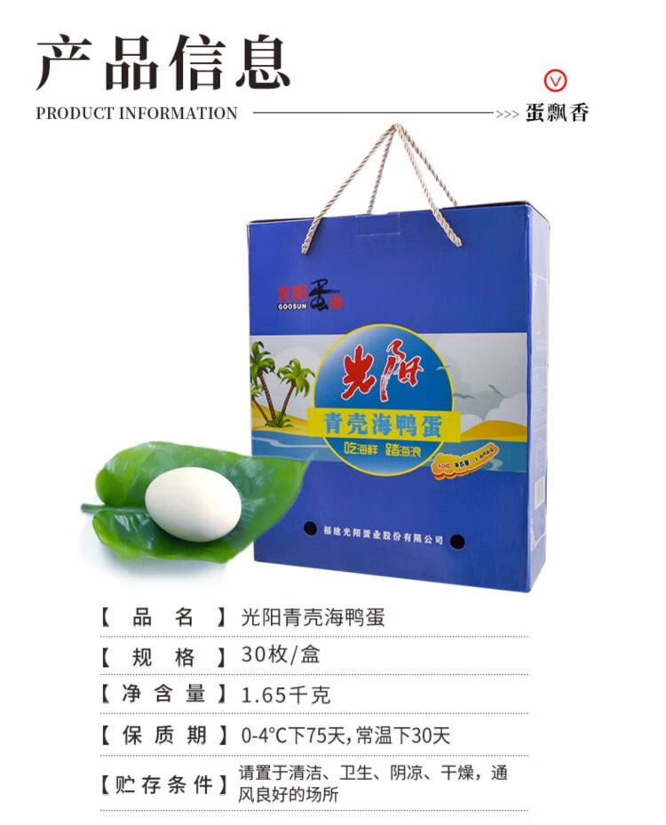光阳蛋业(GOOSUN)青壳海鸭蛋 天然营养海鸭蛋 30枚(1.65kg) 自营