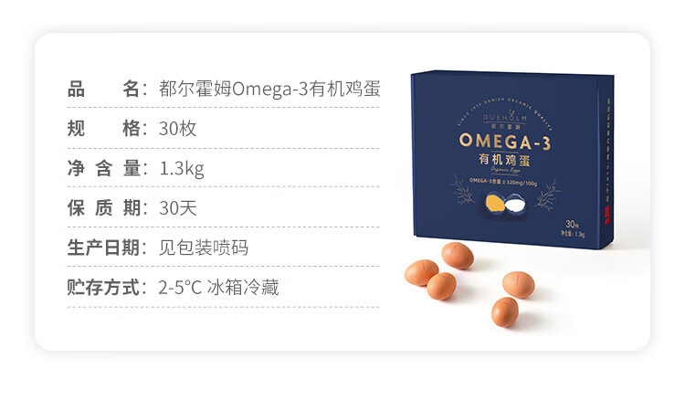 都尔霍姆(DUEHOLM)无沙门氏菌DHA鲜鸡蛋OMEGA-3有机鸡蛋 可生食儿童营养蛋礼盒30枚 自营